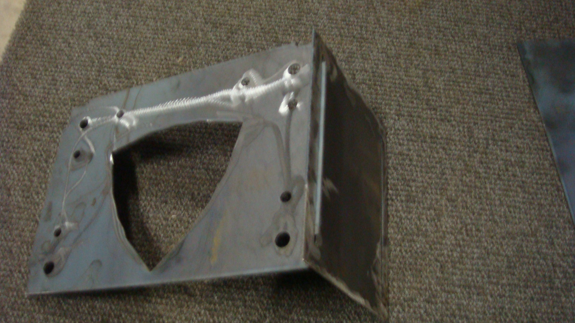 The parts below are the angle iron plate with the side alignment plate. The angle iron plate is tabbed to fit into the slots of the side alignment plate, this way the parts are self aligning and jigging. Adding strength and ease of assembly. This makes the welding so much easier.
