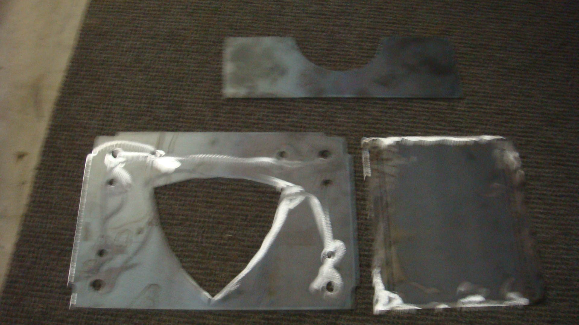 The parts laid out I call the saddle, angle iron, and side alignment plate.